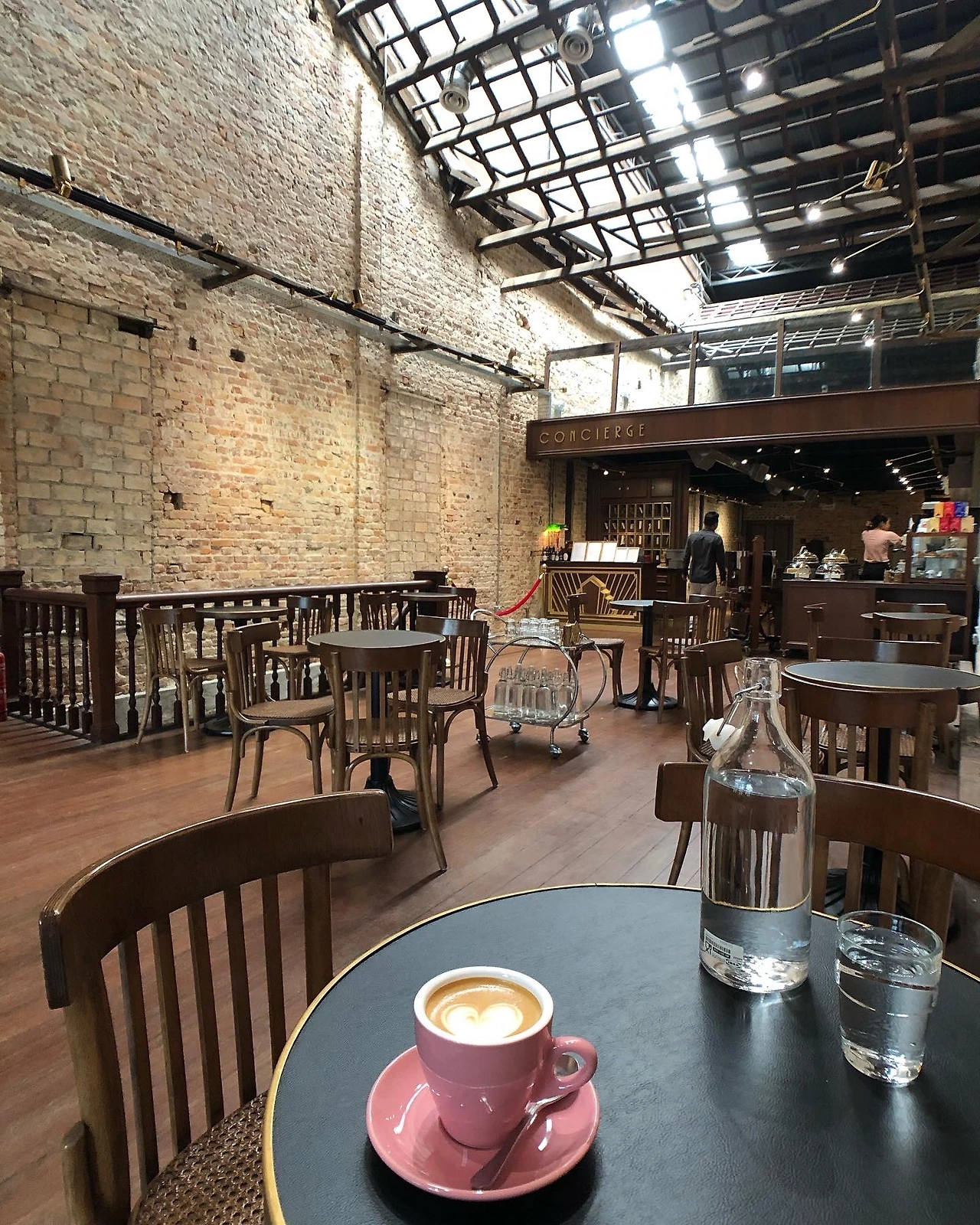 1920년 대 낡은 호텔 건물의 골조를 그대로 둔 채 카페로 변모했지만, 주문을 받는 프런트 위 간판 문구 'Concierge'에서 옛 호텔의 모습을 찾아볼 수 있었다. 늘 그렇듯 오픈 시간에 맞춰 방문하여 한적했고 높은 층고가 주는 개방감은 밖에선 상상 못 할 공간이었다. 추후, 검색을 통해 알게 된 사실은 이곳은 재즈 공연도 정기적으로 열리고 유명 브랜드의 론칭 행사를 진행할 만큼 쿠알라룸푸르 셀럽과 젊은 층이 선호하는 카페였다. 벽돌이 주는 편안함과 세로 폭이 넓은 빈티지 창을 통해 들어오는 차이나타운의 풍경이 미묘했다. 커피는 맛을 의심하며 'Flat white'를 주문했고, 대표 메뉴 추천을 부탁했더니 'Grilled Cheese Sandwich'를 추천해 주었는데, 오븐에 구운 샌드위치도 괜찮았지만, 무엇보다 설마 했던 커피가 너무 맛있었다.