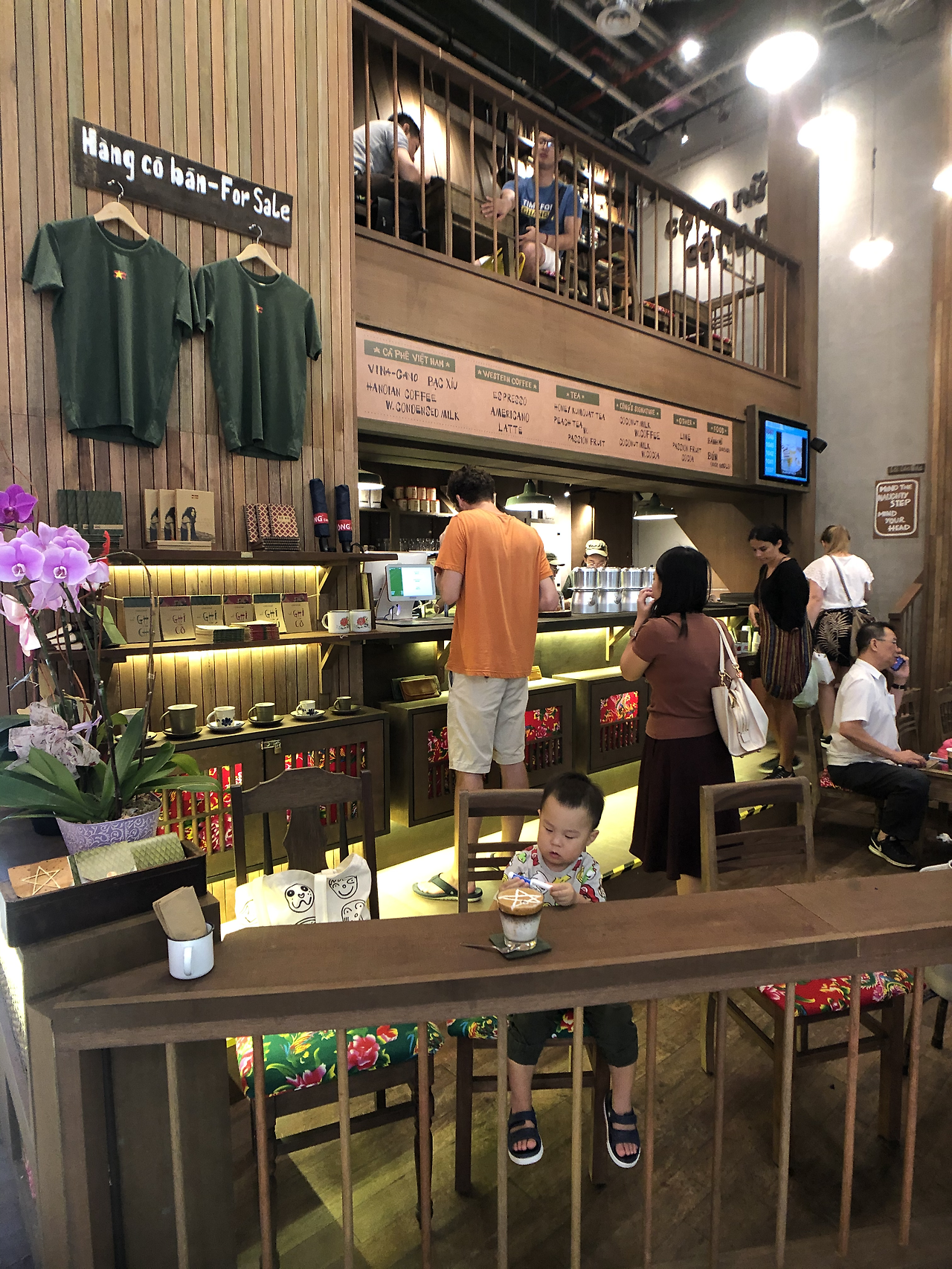 앞서 방문한 예술 박물관은 한적하게 작품 하나하나를 꼼꼼히 볼 수 있었다면, 이곳은 단체 여행객들의 방문 코스로 방문객이 많았다. 선사 시대부터의 말레이시아 반도에 대한 이야기와 식민지의 역사와 독립과 관련된 내용, 다 민족 국민의 전통 의상 등이 전시되어있어 아이들에게 교육적인 부분이 많았다. 전시를 보고 나오는 길에 말레이시아 전통 장난감이 한편에 전시되어 있었는데 우리가 어릴 적 자주 하던 '공기놀이'의 공기 알과 비슷한 장난감이 있어 반갑고 신기했다. 예상대로 더운 날씨에 아이는 기차 앞에서 신이나 계속 뛰어다녔고 박물관 관람 후, 카페인이 너무도 필요해 길 건너 'Nu Sentral쇼핑몰'에 가니 한국에서도 줄 서서 먹는 베트남 카페 '콩 카페(Cộng Càphê)가 있어 코코넛 밀크가 들어간 찐한 베트남 커피 한 잔으로 박물관 투어를 마무리했다.