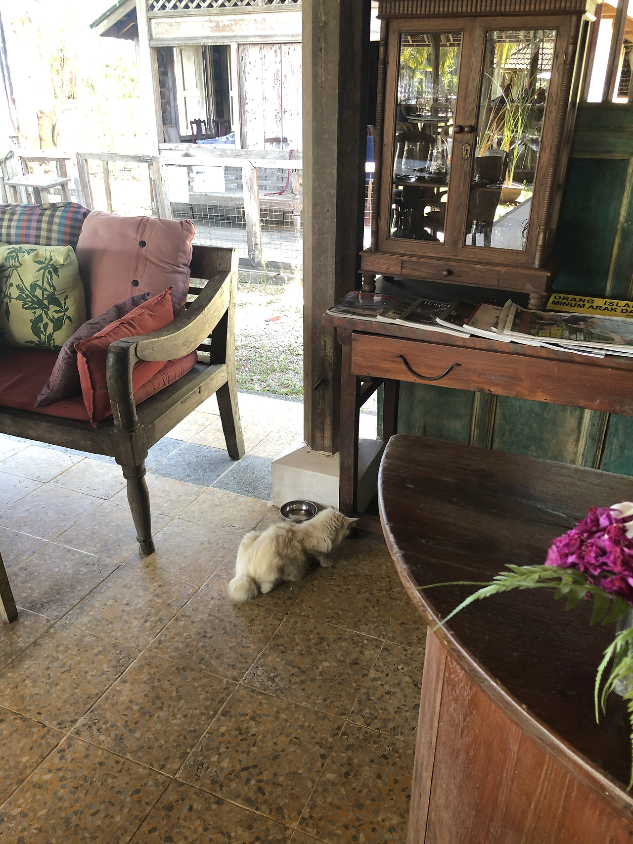 '본톤 리조트'는 우리네 정서에선 어쩌면 불편할 수도 있는 곳이다. 먼저 해변과 가까운 거리도 아니고 말레이시안 전통 우든 가옥으로 주변엔 정글과 나무밖에 없는 숲 속에 있다. 이곳에 찾아오는 이들은 사각거리는 호텔 침구의 쾌적함과 안락함 대신 발을 디디면 삐걱거리는 숲 속 나무집에서 각 빌라별로 거주하고 있는 고양이의 집사를 자청하고 리조트 앞 유기견과 산책 봉사활동을 하는 색다른 휴가를 선택한 이들이다. 그런데도 이곳 8동의 빌라엔 유럽과 캐나다에서 온 가족단위의 투숙객들로 빈 곳이 없었다. 남편과 나는 투숙객들이 선택한 휴가는 어떤 가치 일지, 전통 가옥의 체험은 어떤 느낌일지에 대화를 주고받으며 리조트를 지나 레스토랑으로 향하였다.