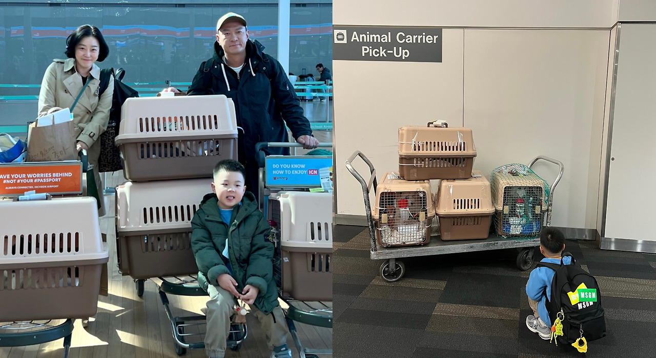 어... 네 마리… 이왕 태워 가는 거 비행기에 최대 다섯 마리래. 그래서 성인 1인당 2마리씩. 그러니까 총 네 마리가 된 거야. 오늘 검역을 위해 티켓이랑 여권 정보 보냈어.
