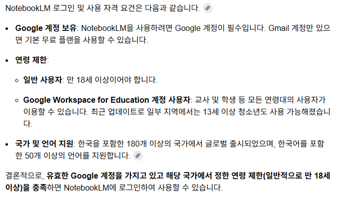 로그인: 18세 이상의 구글 계정으로 노트북 LM 웹사이트에 로그인합니다. 개인 계정과 기업용 구글 워크스페이스 모두 지원됩니다.
