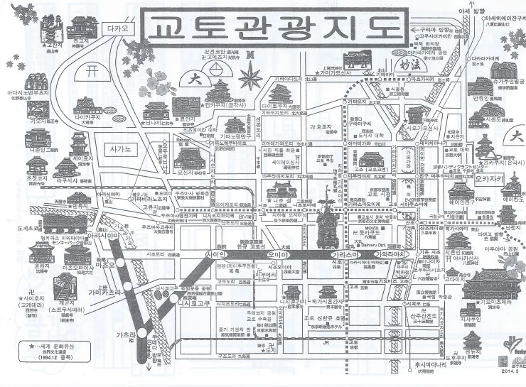 교토 내에 있는 여러 관광지가 알기 쉽게 나와있습니다.