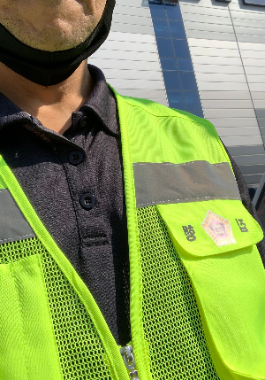 나는 안전모를 쓰고, 마스크를 두 겹으로 착용한 채