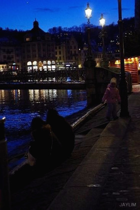 카펠교 건너편에서 사진을 찍고 있노라니 카메라 앞으로 와 사진을 찍어달라며 포즈를 취하던 아이.