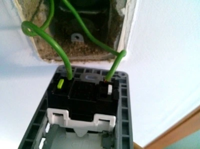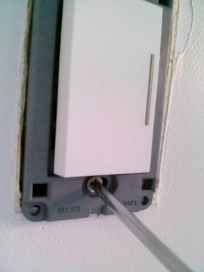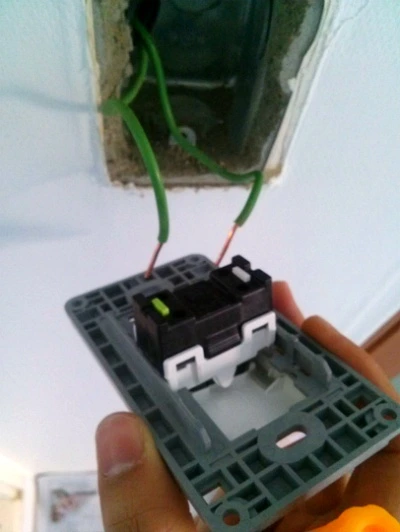 기존 스위치를 해제하다 보면 전선 두 가닥이 모습을 드러냅니다. 일자 드라이버로 전선 홀더를 누르고 전선을 당기면 쉽게 빠집니다. 저는 순서 상관없이 연결해도 이상이 없었습니다. 따라서 두 가닥 종류는 상관이 없는 듯합니다. 새 스위치로 교체하고 조립하면 끝입니다.