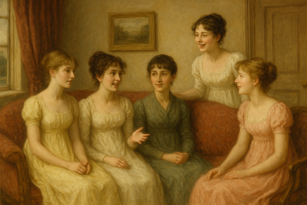 넷째인 키티와 막내인 리디아는 어떤 딸일까. 두 딸은 다소 경박하고 오로지 관심은 장교들과의 교제 혹은 사교장에서 입을 예쁜 드레스 등에 있다.