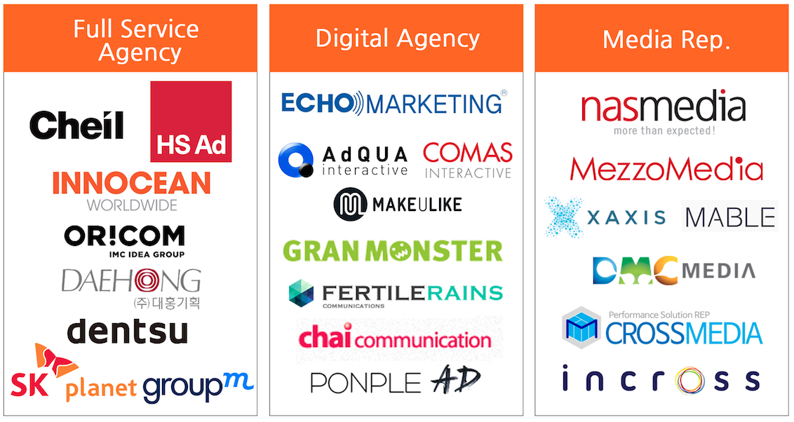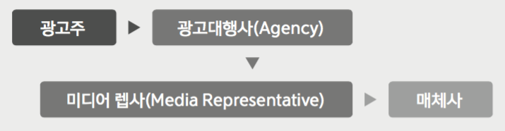 광고주가 찾아가는 ‘광고대행사(Agency)’는 광고주를 직접 상대한다. 광고 영업을 진행하고, 광고 소재 제작 등의 크리에이티브 작업을 맡는다. 그리고 광고대행사는 ‘미디어 렙사(Media Representative)’를 찾아가 광고 매체 인벤토리 구매(Media Buying) 등의 업무를 요청한다. 랜드스케이프 왼쪽 상단의 풀서비스 에이전시, 디지털 에이전시, 미디어렙이 여기에 해당한다. 풀서비스 에이전시는 TV 광고 등 모든 광고 영역을 담당하고, 디지털 에이전시는 모바일 광고 등 디지털 광고에 더 특화돼 있다.