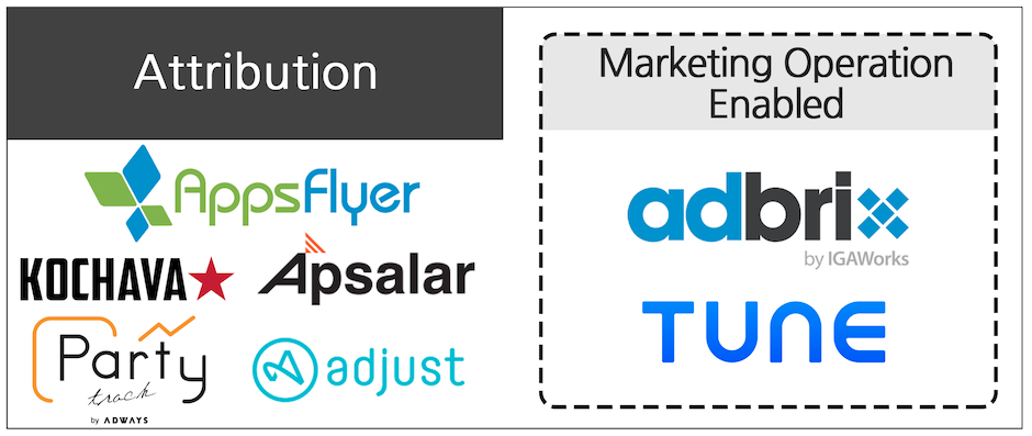 광고주 입장에서 모든 광고 캠페인의 성과를 객관적으로 분석하는 솔루션이다. 앱 방문 현황 등의 앱 분석 기능도 함께 제공한다. 대표적으로 애드브릭스, 튠, 앱스플라이어 등이 있다. 특히 애드브릭스와 튠은 마케팅 운영 솔루션과 연동해 쓸 수 있어 편리하다.