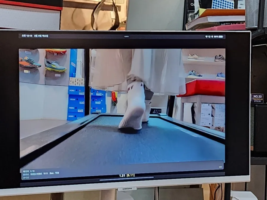 35년을 함께 한 내 발이 달라지는 것도 아닌데, 새로운 내 발을 만나는 기분이었다. 발 분석을 하러 규모가 크지는 않지만 벽면에 다양한 브랜드의 러닝화로 빼곡하게 채워진 신발 가게에 들어선 순간, 이 신발들 중 나의 단 하나의 신발은 무엇일까 설렜다. 평소 물건을 살 때면 떠오르는 이유를 알 수 없는 죄책감과 주저함이 없는 당당한 쇼핑이었다.