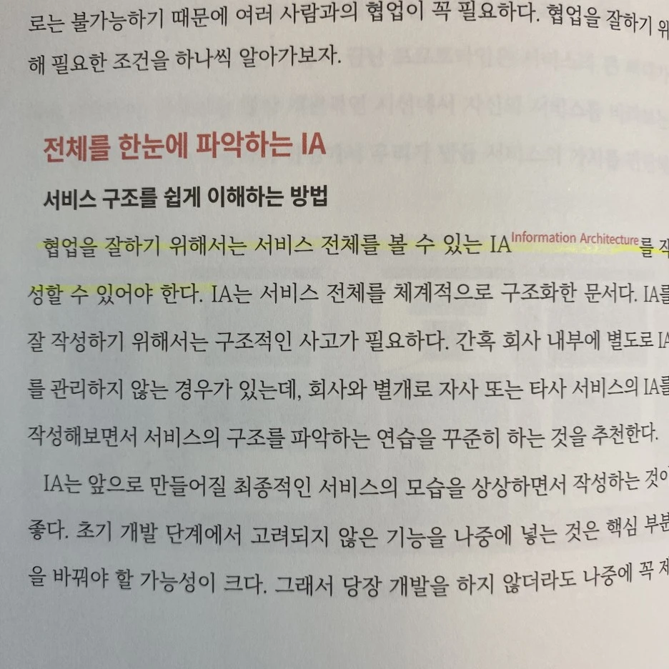 협업을 잘하기 위해서는 서비스 전체를 볼 수 있는 IA(Information Architecture)를 작성할 수 있어야 한다. 먼저 IA를 작성하기 위해서는 기능들을 구체적으로 리스트업 해야 한다. 참고로 기능 목록을 작성할 때는 눈에 보이는 메인 화면뿐만 아니라 보이지 않는 관리자 페이지까지 고려해야 한다.