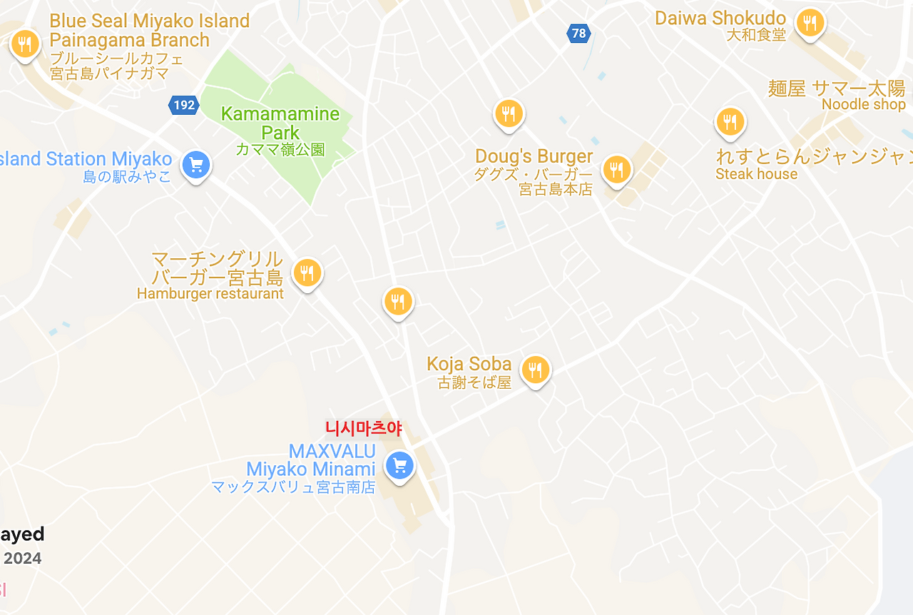미야코지마에는 상점이 모여있는 곳이 몇 군데 있는데, 하나가 그중 하나가 슈퍼마켓이 있는 곳이고, 또 다른 하나가 공항 근처의 몰이다. 동남쪽에는 이런 상점가가 전혀 없어 편의시설을 이용하려면 꼭 공항 근처로 와야 하니 숙소를 정할 때 주의해야 한다.