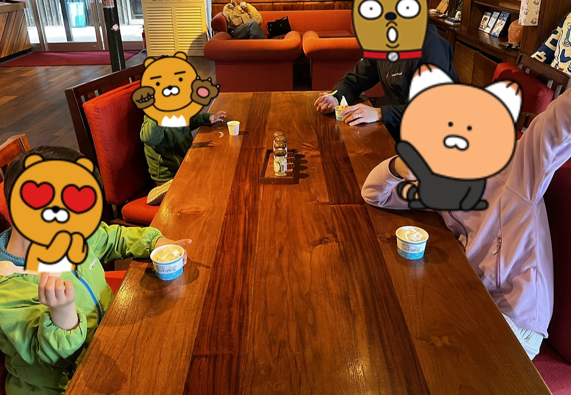 농원을 다 둘러본 후, 아이들이 또 아이스크림을 먹고 싶어 했다. 오키나와의 열대과일들로 만들어진 아이스크림을 그냥 지나치는 건 역시 힘들지... ㅎ