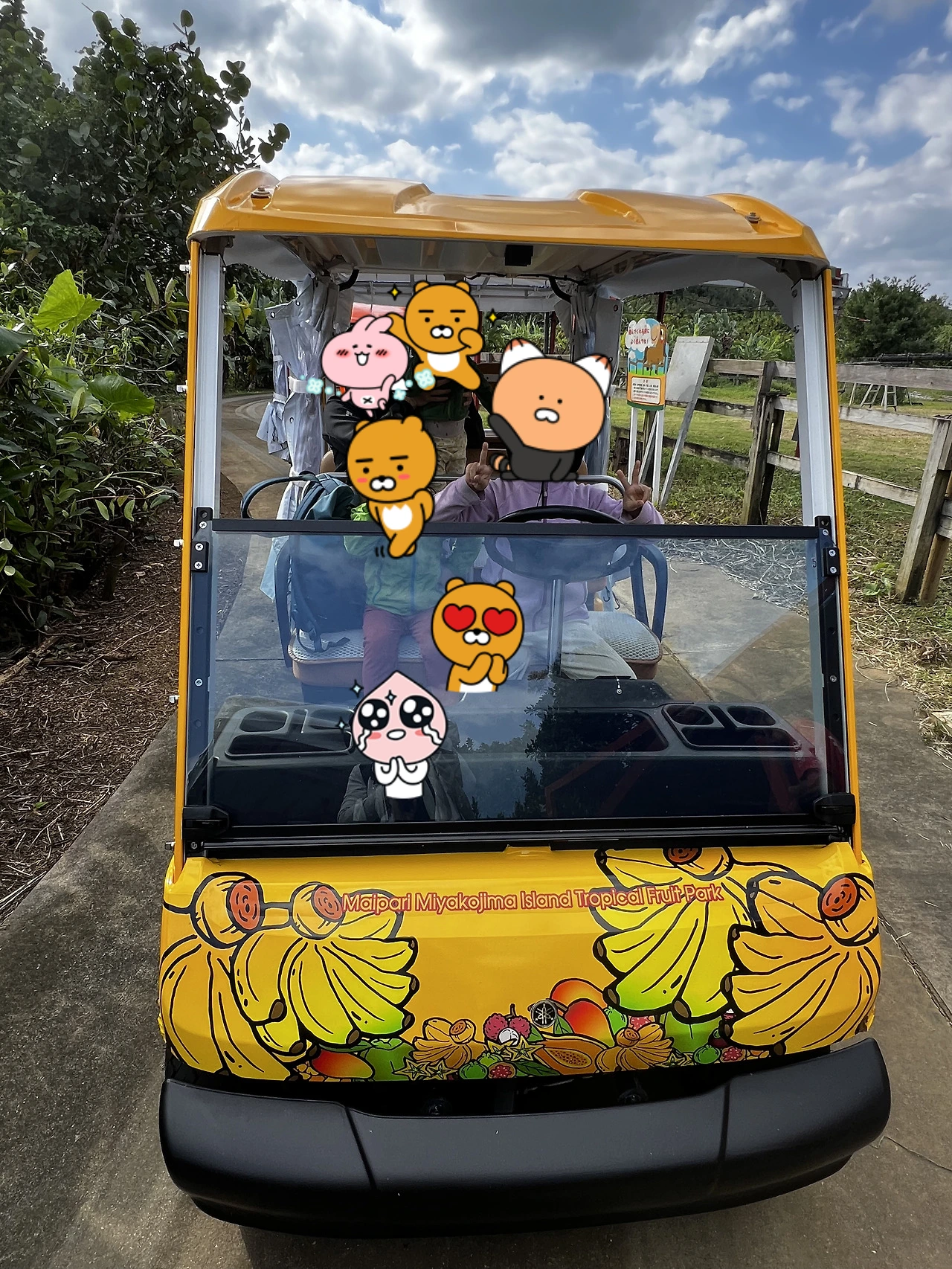 11월은 재배 시기가 아니라 안타깝게도 파인애플이 달려 있는 모습을 볼 수는 없었지만. 바나나 나무가 잔뜩 있어 바나나 열매를 가까이서 볼 수 있었고, 오키나와에서 유명한 나무와 꽃들에 대한 설명도 들을 수 있었다. 코스 중간에 있던 목장에서는 말에게 먹이도 주었다.