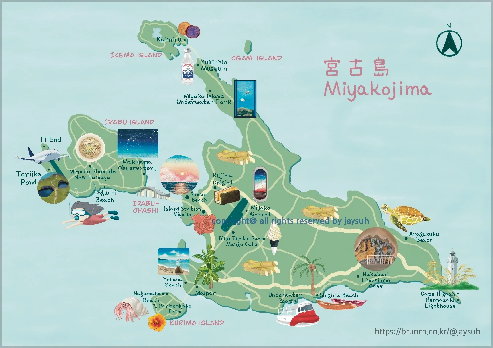 완벽한 지도가 아니라, 우리가 다녀온 미야코지마의 모습을 담으려 했다.