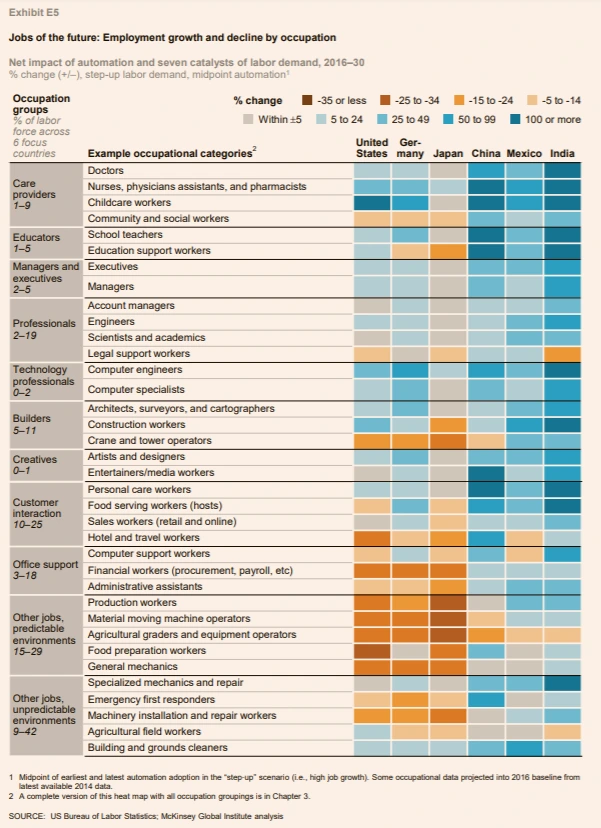 매킨지글로벌연구소, ‘사라질 직업과 새로운 직업들, 자동화 시대의 인력 변화’, 2017