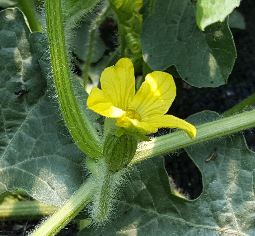 이것이 바로 수박 암꽃이다. 호박처럼 작은 수박이 매달려 있다. 수정된 것도 아니면서 왜 작은 수박이 매달려있어 그동안 나를 헷갈리게 만들었는지 모르겠다.