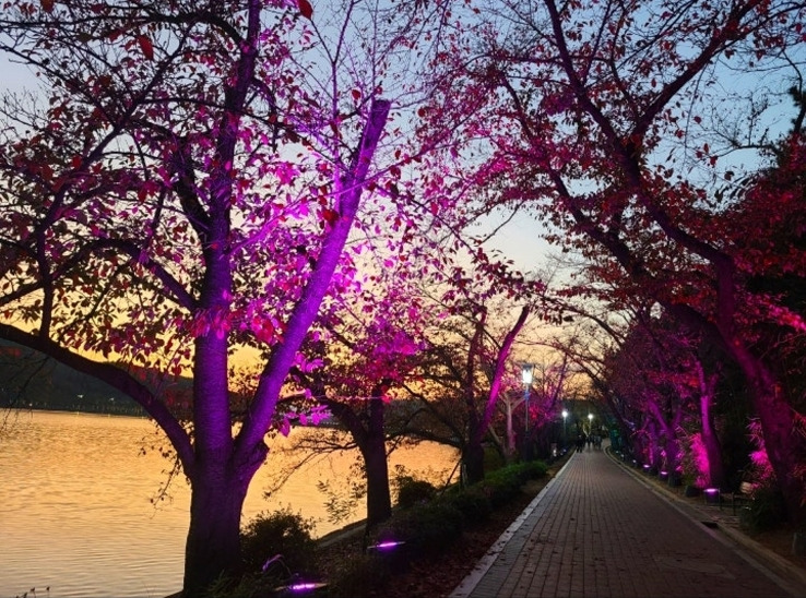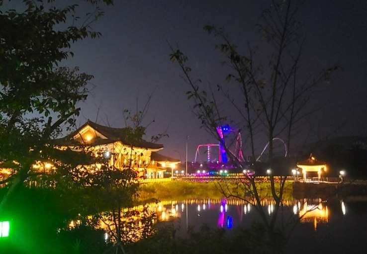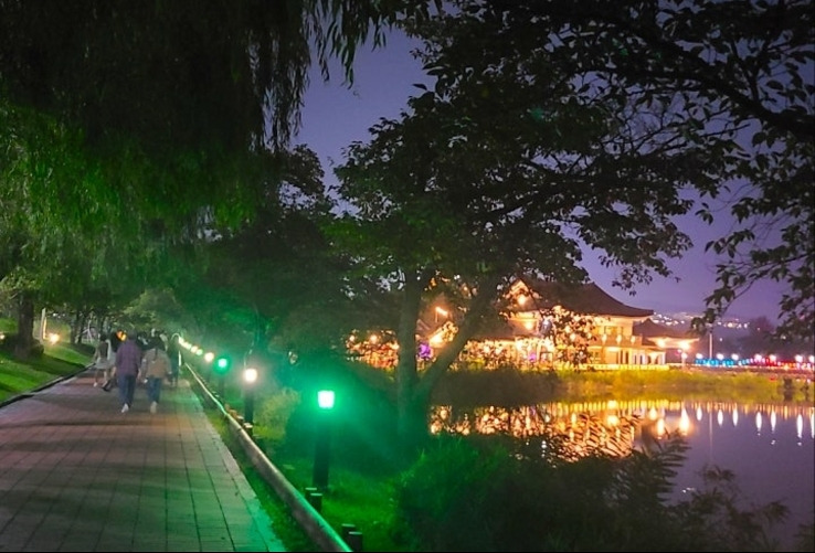 공원 중앙에는 거대한 호수가 있는데, 사방에 어둠이 깔리면 호수에 오색빛깔이 일렁인다. 공원 산책로 LED 조명들도 빨갛게, 파랗게, 노랗게 시시각각 변신한다. 신라의 고즈넉한 밤 정취에 반짝반짝 빛나는 불빛들. 이곳을 사랑하지 않을 수 없었다.