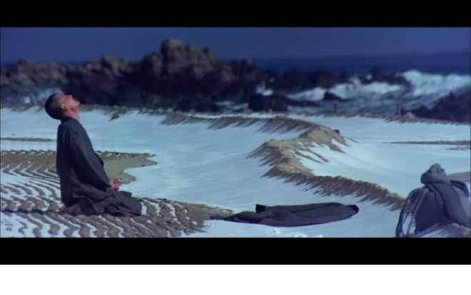 임권택 감독의 『만다라』에서는 작가와 비슷한 정체성을 지닌 법운이 병 속의 새에 대한 전언을 듣고 뛰쳐나간다. 눈이 쌓인 겨울 바다 앞에서 그는 날아가는 새를 보며 무릎을 꿇고 앉아있다. 말이 없는 순간이지만 그 어떤 입말보다 가득 찬 마음의 소리가 법운의 마음에 자리잡고 있다. 이런 영화의 장면은 적요하게 서재에 놓여있는 소설을 대신 얘기해주기도 한다. 초판본의 『만다라』와 2001년 작가가 개작한 『만다라』의 결말은 다르다. 초판본에서는 법운이 반야행 차표를 찢고 인파 속으로 달려가는 장면으로 마무리되고, 개작에서는 법운이 정류장으로 달려가며 마무리된다. 영화의 마무리는 어떨까. 법운은 다시 만행의 길로 떠날까, 아니면 속세로 걸음을 향할까. 초판본과 개작의 사이에서 영화는 좋은 지침서가 될 것이다.
