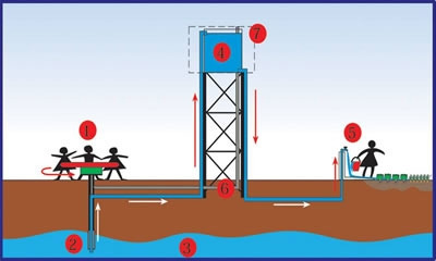 원형교차펌프를 회전목마 같이 만들어서 아이들의 놀이기구로 무료제공하는 겁니다. 그러면 놀이기구의 지면 아래로 연결되어 있는 원형교차펌프가 돌아가면서 지하의 물을 끌어올려주고 그 물은 물탱크에 저장되죠. 물탱크에는 광고를 유치해 그 광고수입으로 펌프유지비용을 충당합니다. (아프리카 시골 깡촌에 광고를? -.-;) 정말 획기적인 아이디어죠? 모두가 행복한 프로젝트 입니다. 어른들은 힘겹게 물을 길러 먼길을 오갈 필요나 수동펌프의 레버를 힘들게 조작해 펌프를 가동할 필요가 없었습니다. 아이들이 재미있게 회전목마를 돌리며 놀면 되고, 모금 마케팅을 주관하는 조직은 막대한 비용 (이익?)을 취할 수 있죠.