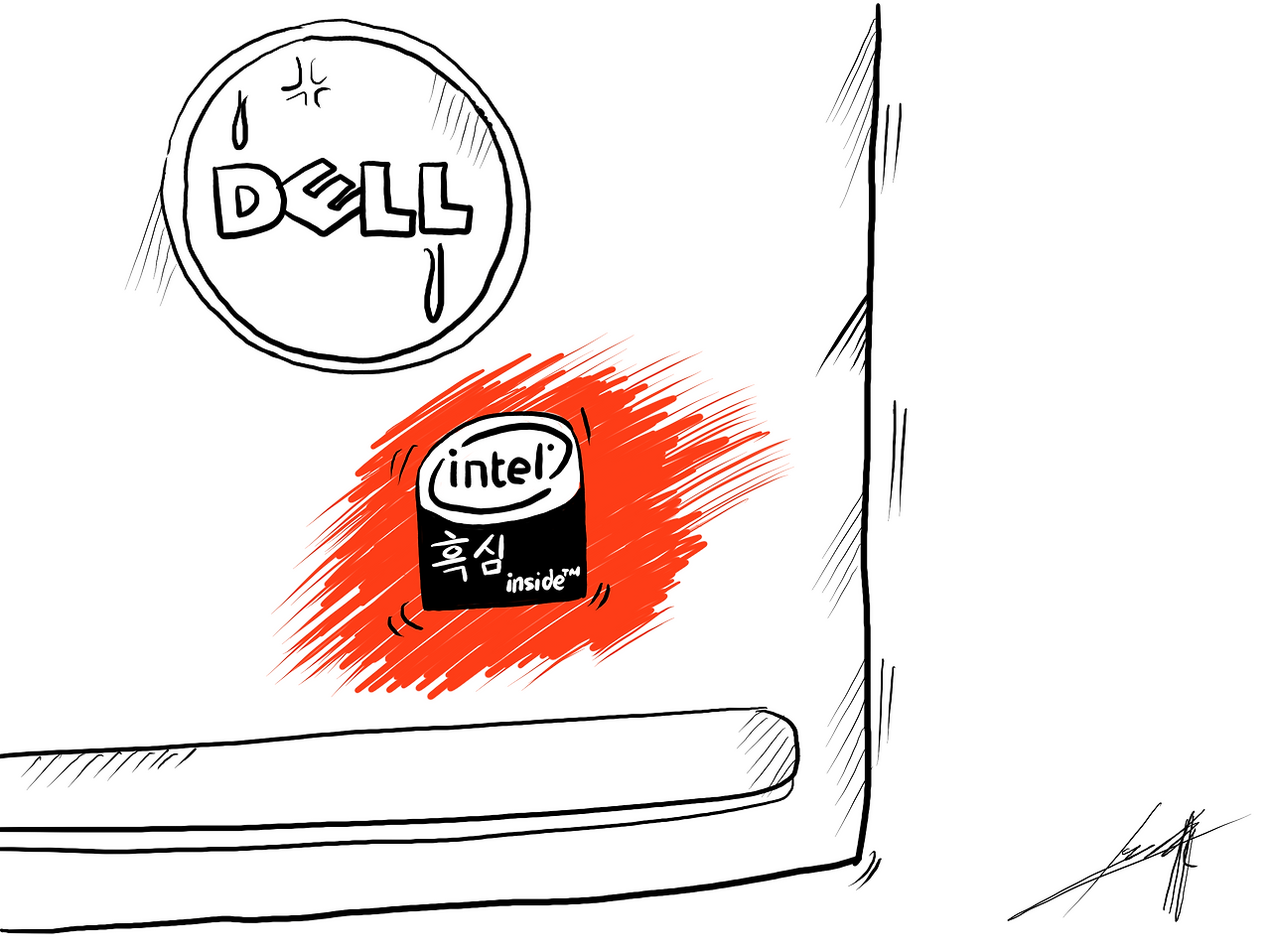 이런 제안이었죠. 인텔은 이 프로젝트에 첫 3년간 5억달러를 썼고, 10년간 무려 40억달러 이상을 시장에 뿌렸습니다. 시간이 지날수록 애플 컴퓨터를 제외한 전세계의 PC 제조업체들은 인텔의 조여오는 손바닥안으로 들어가게 됩니다. 시장개발펀드는 여러 광고비용으로 집행할 수 있지만 기한은 고작 1년뿐이었고, 광고는 인텔의 승인을 받아야만 했습니다. 딩딩~딩딩 하며 돌아가는 '인텔인사이드' 짧은 인텔의 광고영상과 케이스에 붙어있는 '인텔인사이드'스티커는 최종 소비자에게 오랫동안 노출되면서 그들을 서서히 공략해가고 있었습니다. 50대이상의 주부가 학생용 컴퓨터를 구입할때도 삼성, LG노트북이 아니라 '인텔' 컴퓨터를 요청하게 되었고, 그외의 CPU는 비슷한 성능이라고 하더라도 소비자에겐 너무 생소해서 CPU인가? 하는 의문을 주는 정도가 되었던 것 입니다. 컴퓨터 제조업체들은 1991년 인텔의 제안을 받아들였던 것을 두고두고 후회할 겁니다. 컴퓨터 업계의 헤게모니 (Hegemonie:주도권)을 인텔에게 그냥 넘겨준 것이기 때문입니다. 컴퓨터의 주요부품인 CPU하면 떠오르는 브랜드가 '인텔'이죠.