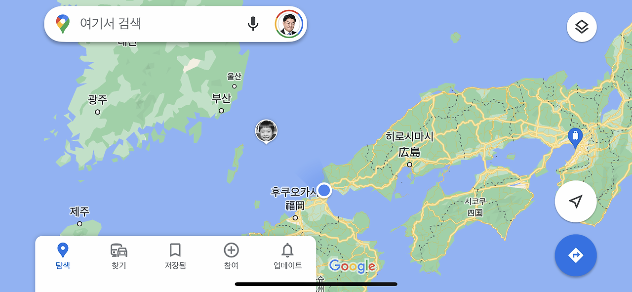밤 9시정도 부산을 출발한지 6시간 남짓 일본 혼슈와 규슈사이를 지나고 있습니다.
