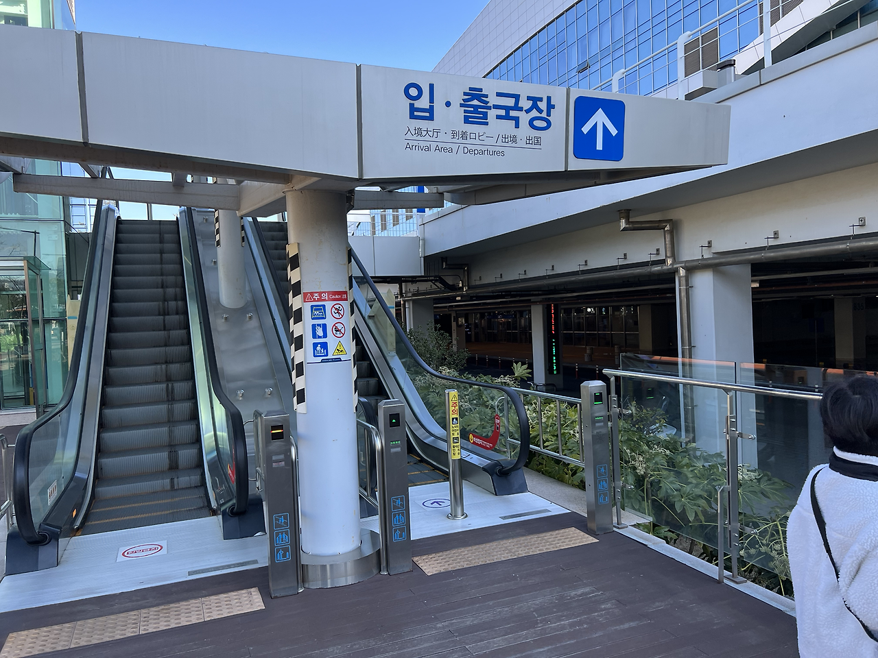 입출국장으로 올라가는 에스컬레이터를 타고 터미널로 올라갑니다.
