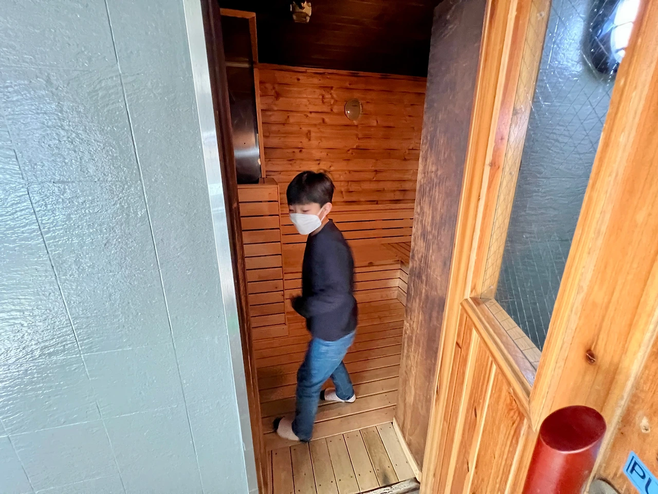 사우나고 있네요. 아들은 들어갔다가 뜨거운 열기에 깜짝놀라 뛰어나옵니다. ㅋ