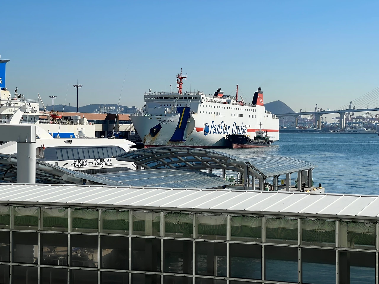 난간너머로 오사카로 가는 '팬스타드림호'도 보이고, 후쿠오카로 가는 '퀸비틀호'도 보이네요. 브이^^v