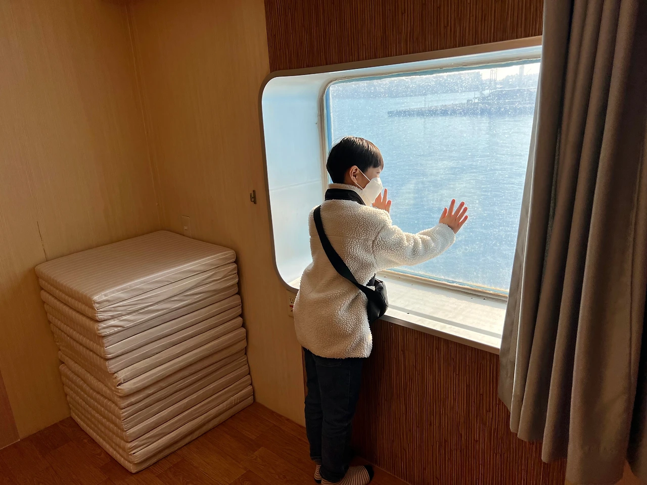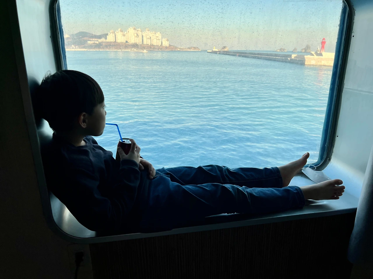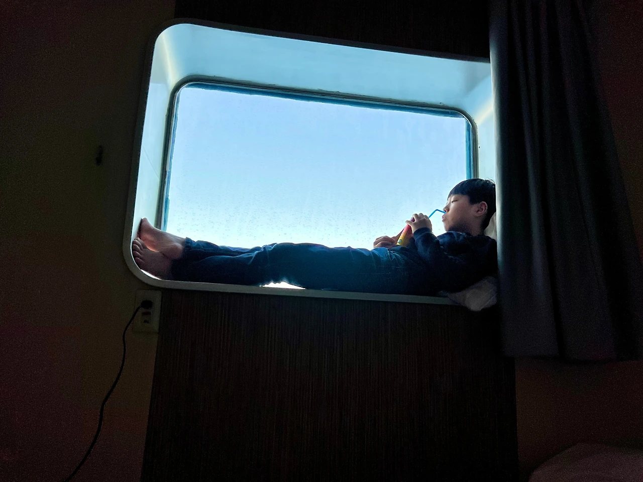 "우와! 아빠 바다가 보여요." 특실은 아니지만 창문이 없는 답답한 객실이 아니라 바다가 보이는 객실이니 좋네요.