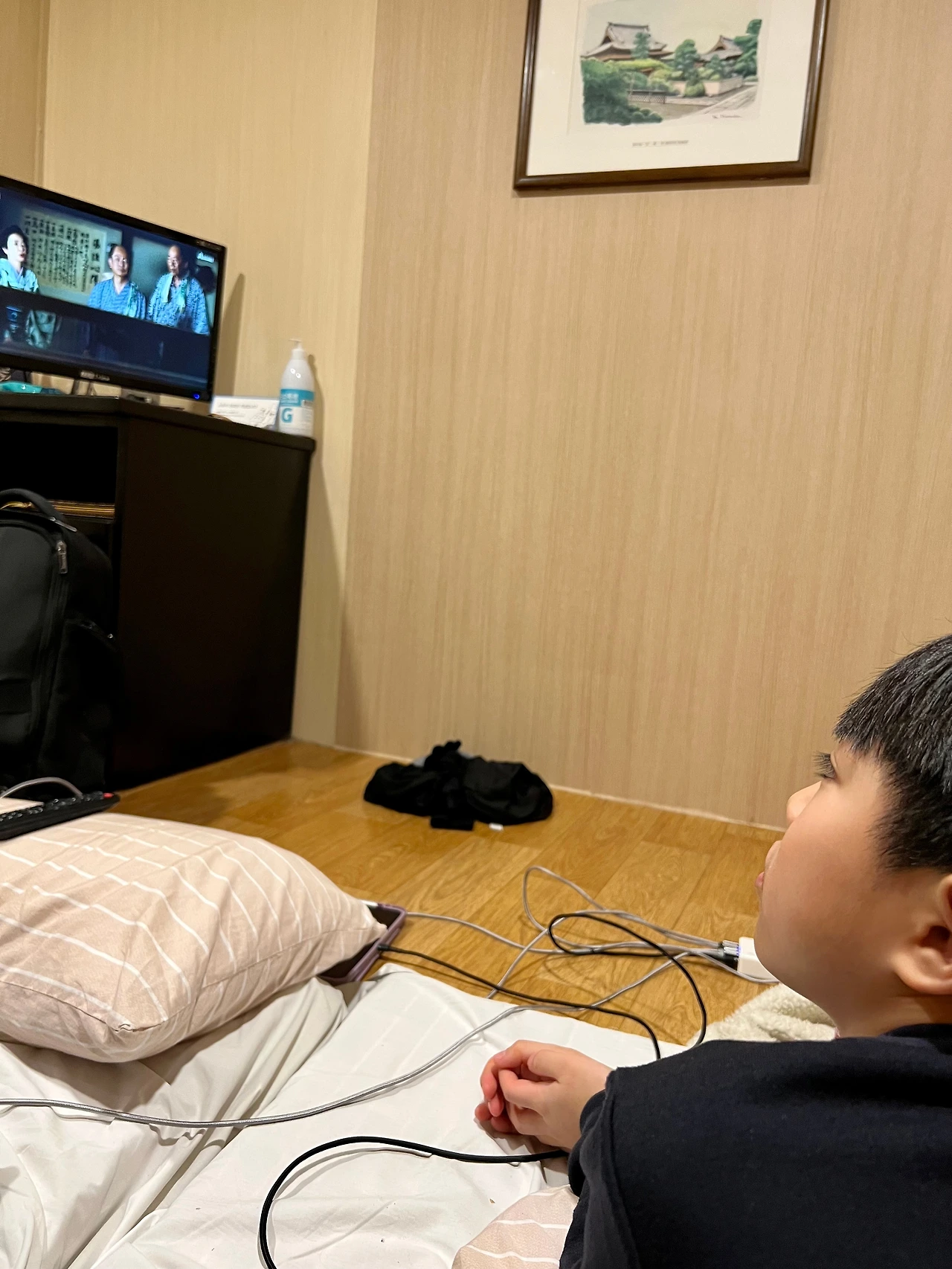 객실TV에서 NHK나오네요. 처음보는 일본방송과 광고를 한참 유심히 보고 있습니다. "아빠 저 사람들 머리는 왜 저래?"