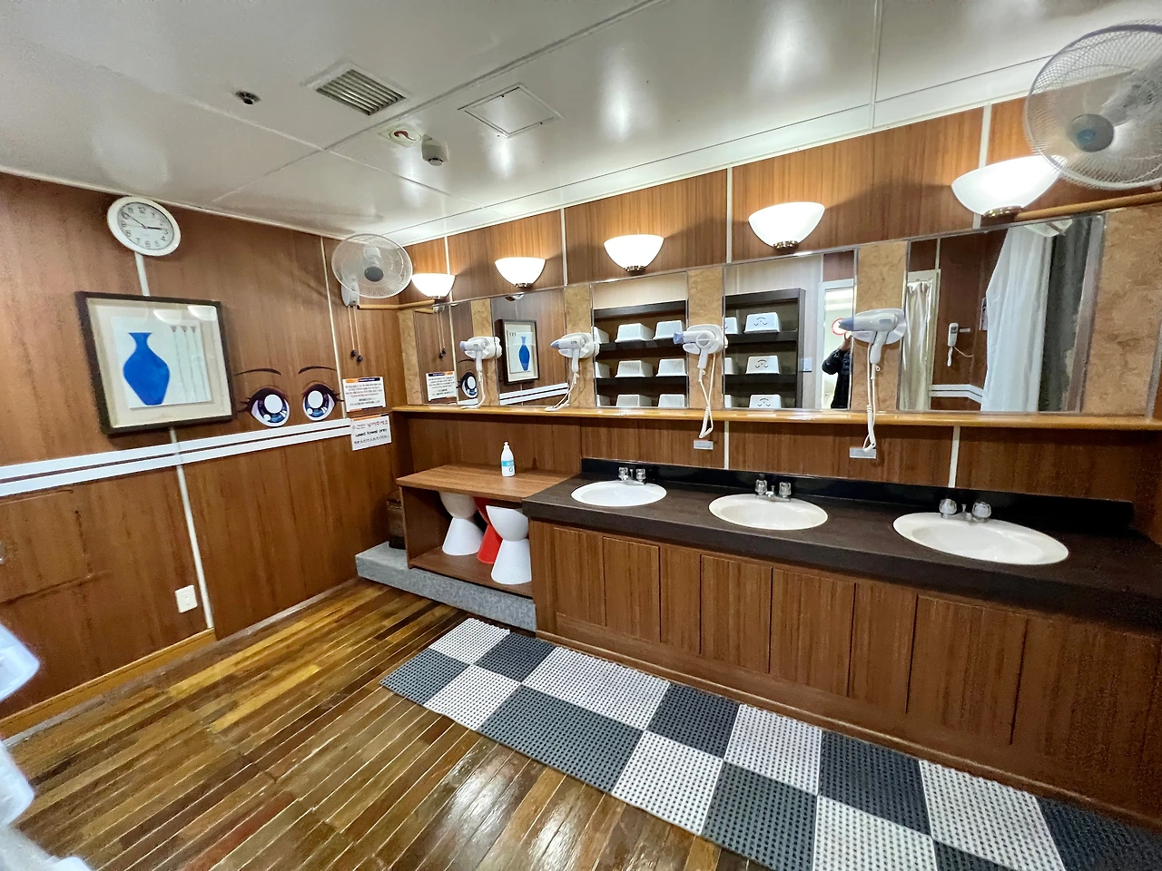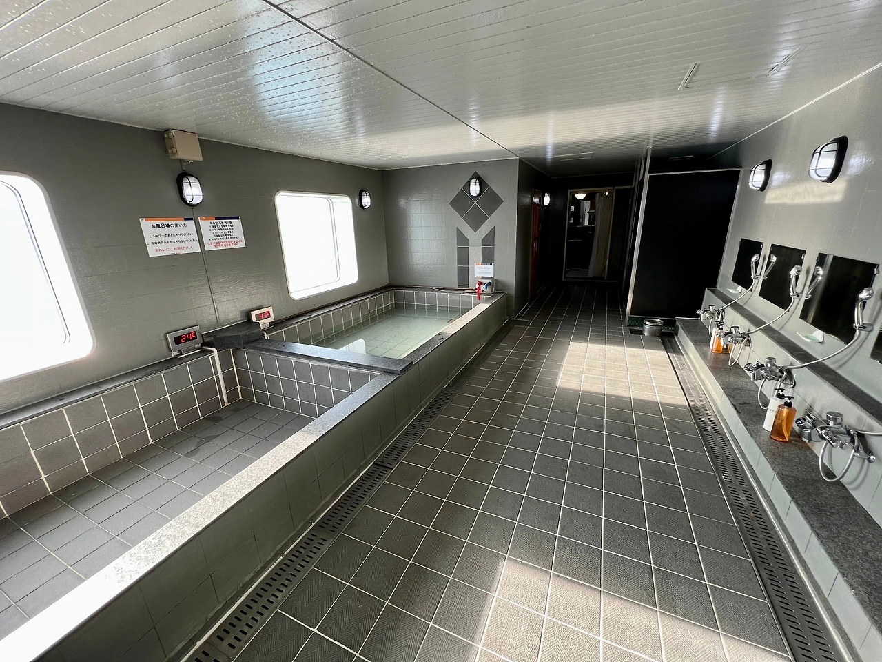 짐을 방에 두고 배를 돌아보고 있습니다. 객실 바로 옆에 있는 목욕탕! 대박이네요. 창밖을 보며 느긋하게 몸을 담글 수 있습니다.