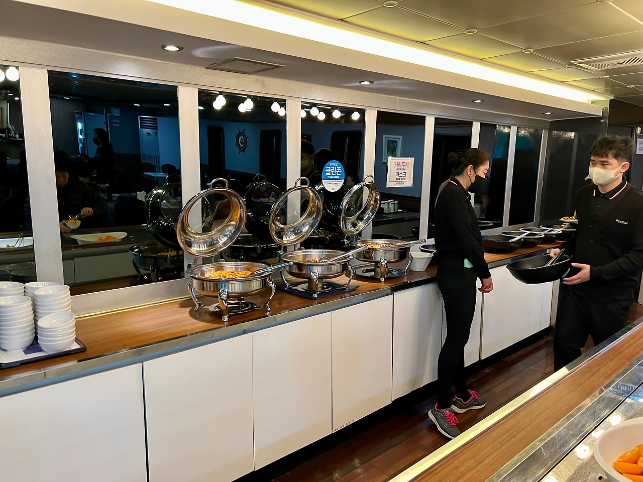 저녁시간입니다. 식사는 뷔페네요. 종업원들은 동남아 사람들이 많습니다.