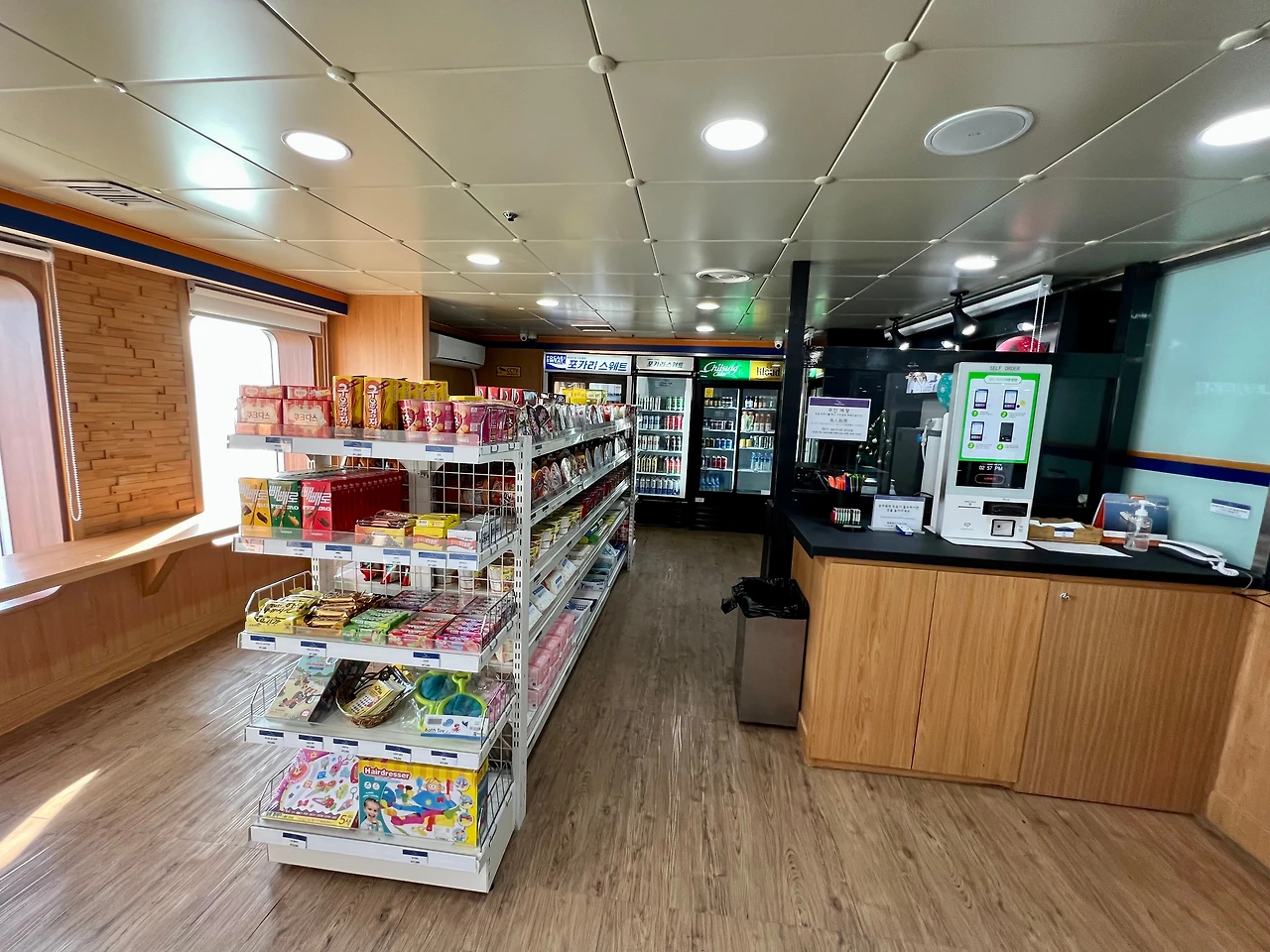 '팬스타드림호'의 로비입니다. 레스토랑, 인포메이션, 편의점등이 보이네요. 꽤 넓습니다.