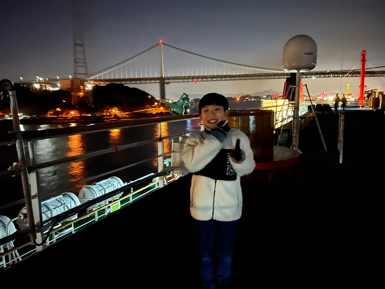칸몬대교(関門大橋)아래를 지나가고 있습니다. 해협을 사이에 두고 마주보고 있는 시모노세키(下関)와 모지(門司)에서 한자씩 따서 칸몬대교(関門大橋)라고 이름지었다고 합니다. 장관이네요.