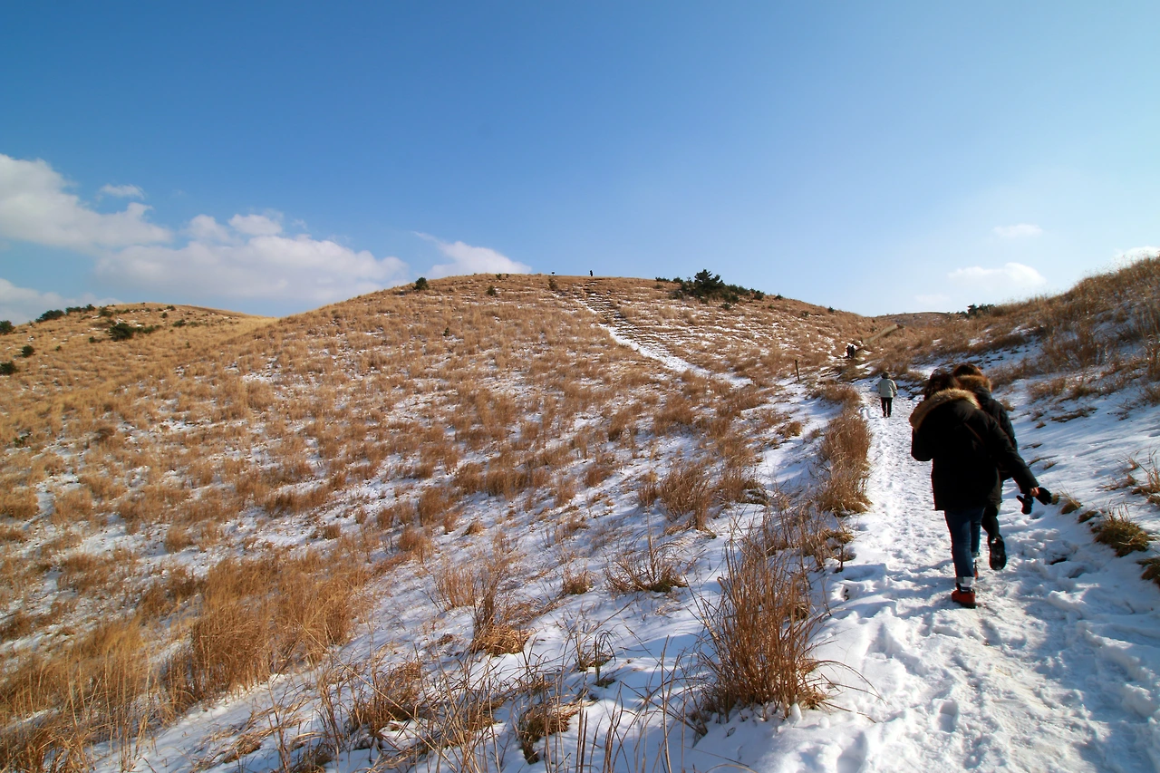 겨울에도 사실 용눈이오름에서 눈을 보기란 그리 쉽지 않습니다. 하지만 이번 폭설은 예외죠. 32년만의 폭설이니까요. 접근 도로의 제설이 빨리 이루어졌으면 더 눈 덮힌 용눈이를 만날 수 있었을 텐데라는 아쉬움이 있네요.