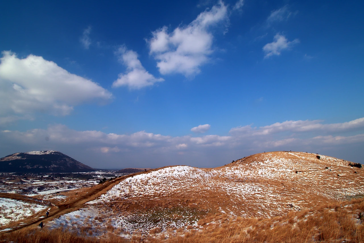 겨울에 용눈이와 만나러 갈 때는 반드시 바람이 장난 아니라는 것을 염두에 두셔야 해요. 미친듯 부는 바람을 만날 테니까요. 하지만 이상하게도 그 어떤 곳에서 만나는 바람보다 사람의 마음을 시원하게 만들어주는 바람이라는 느낌을 가지실 겁니다. 용눈이의 바람은 특별하죠. 정상에 올라서면 멀리 성산일출봉과 우도가 보이죠. 곧 봄이 오면 오름 밑은 노란 색깔로 덮힐 겁니다. 유채꽃이 내려다보이는 들판을 가득 메울 것이기 때문이죠. 1월보다는 사실 제주는 2월이 더 춥습니다. 조금 더 추위를 겪고 나면 용눈이의 푸르름이 되살아나고 물론 사계절 모두 아름답지만 지금보다 더 아름다운 용눈이의 자태를 만나게 될 겁니다. 제주에 오시면 꼭 용눈이오름에 올라가 보기를 바랍니다. 오름의 아름다움을 느껴보세요.