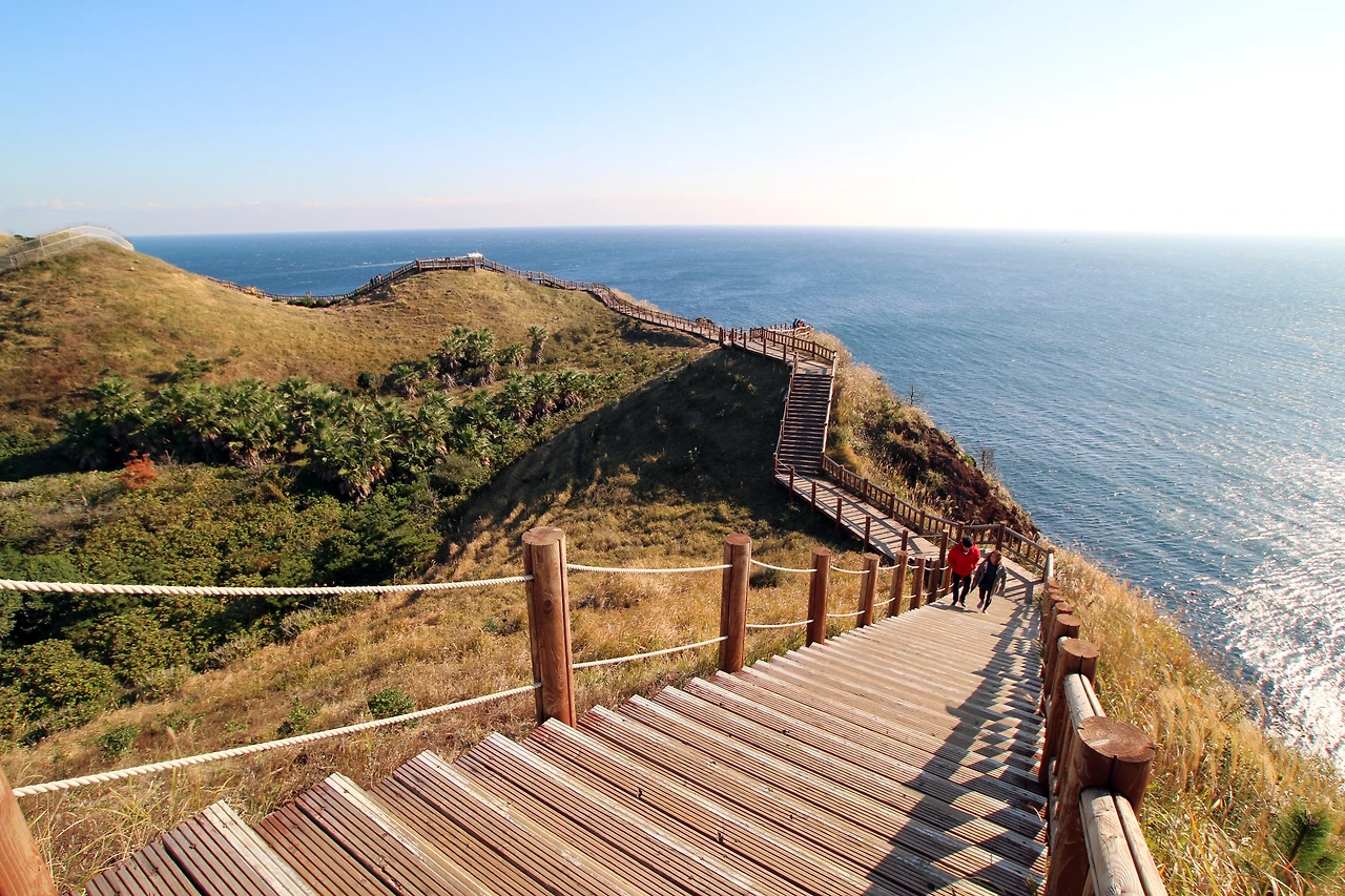 세 번째 추천 장소는 송악산이다. 송악산으로 가는 길은 모슬포항에서 늦은 점심을 해결하고 해안도로를 따라 접근하는 것을 추천한다. 모슬포항에는 맛난 식당들이 제법 있다. 푸짐한 빨간 해물짬뽕이 일품인 <홍성방>도 나쁘지 않다. 송악산은 데크가 깔려 있는 둘레길을 걷거나 정상에 올라가 볼 수 있다.