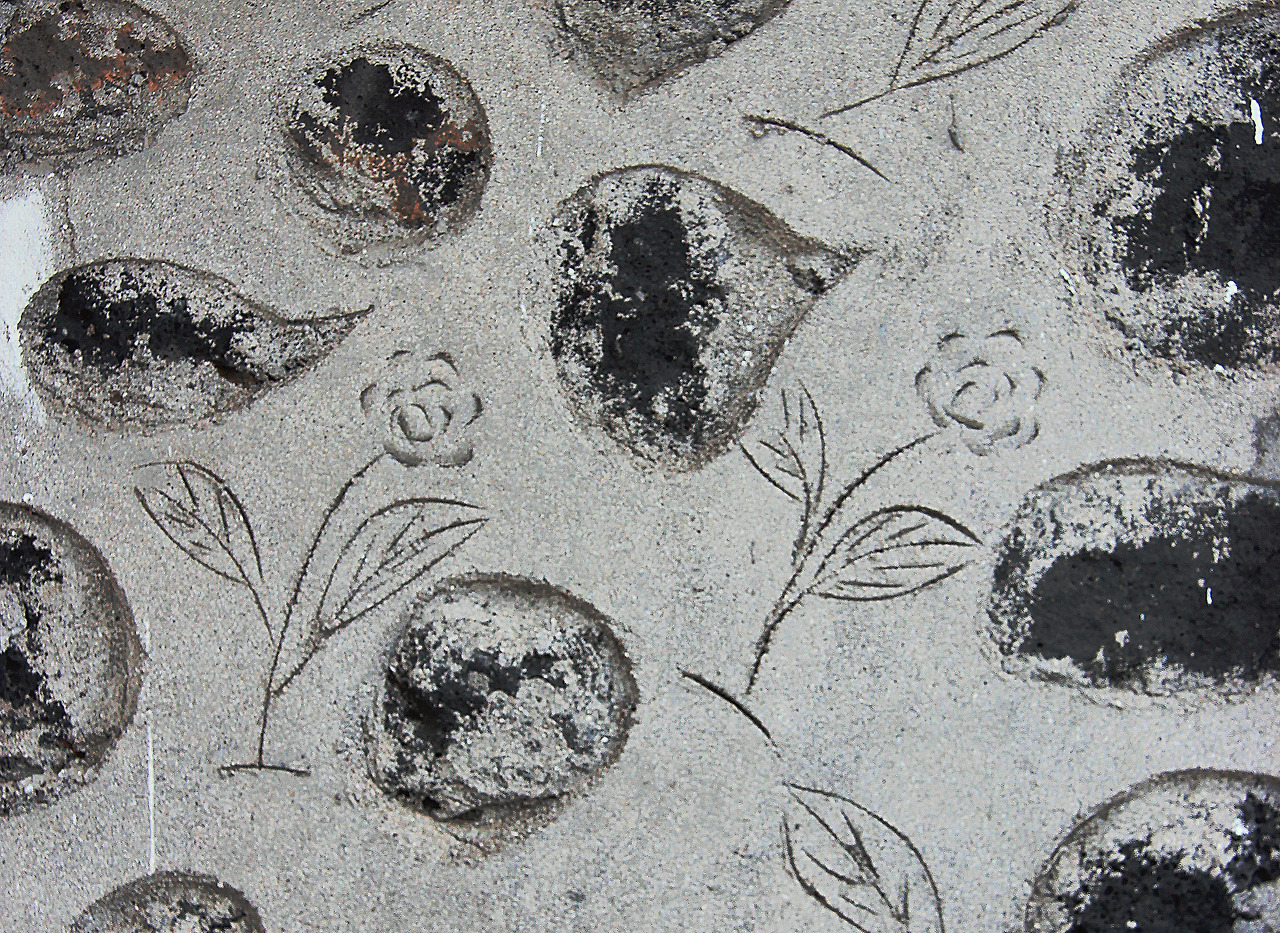 세멘꽃이 뭐냐고요? 시멘트에 새겨진 꽃을 말하는 거예요. 미장이들이 시멘트를 바르고 굳기 전에 쇠흙손으로 슥슥 그려낸 것이죠. 요즘에도 시멘트를 사용하지만 이런 그림을 그리는 미장이들은 없습니다.