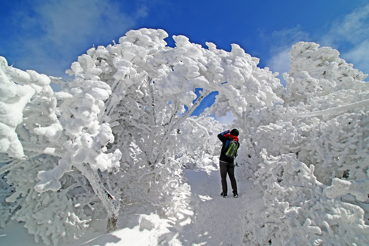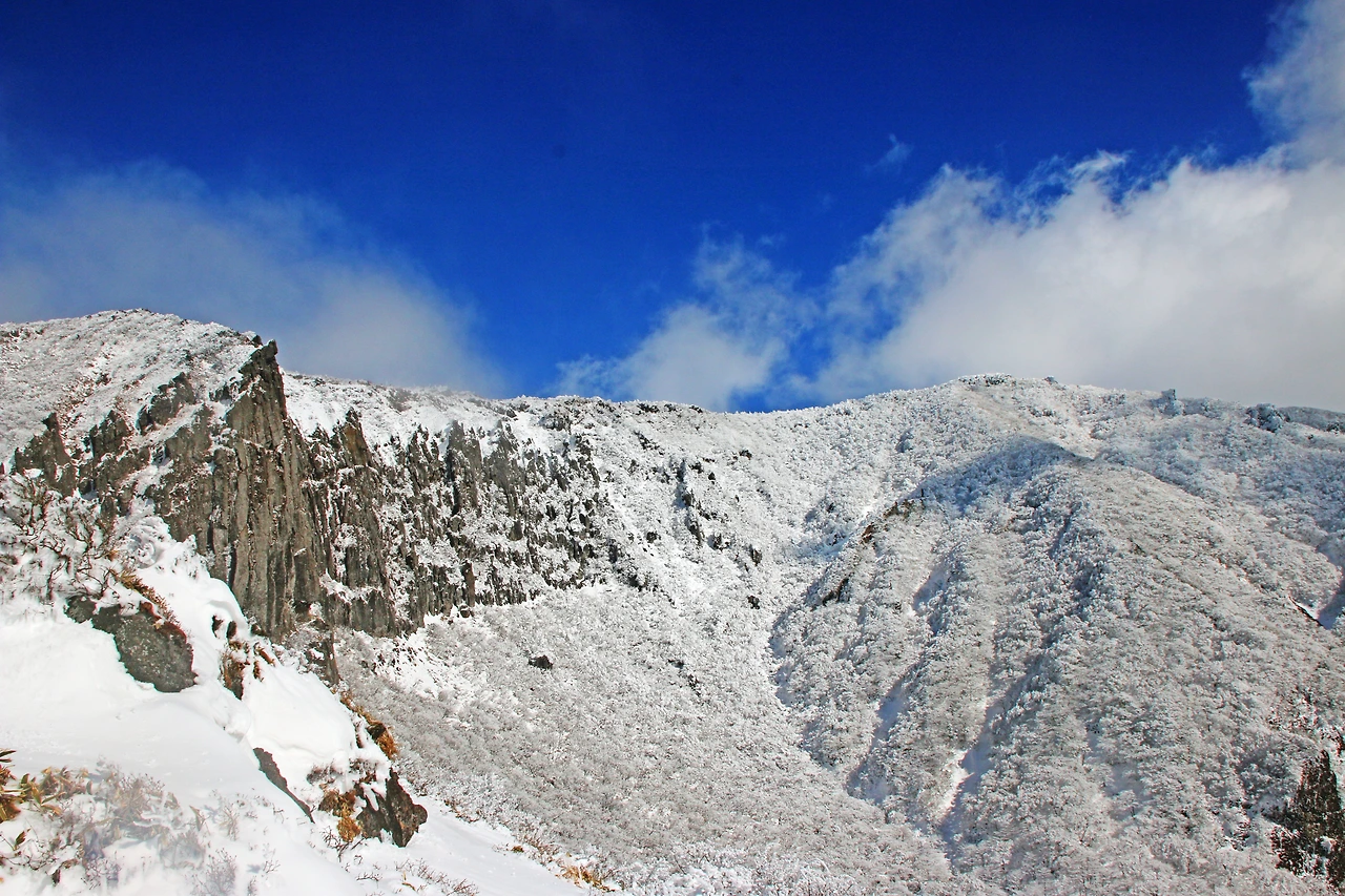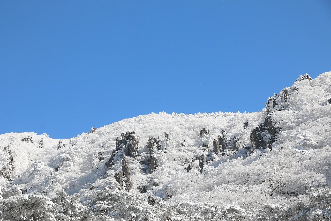 눈 덮인 한라산은 자주 볼 수 있지만 쉽사리 오름을 허락하지는 않습니다. 눈 때문에 도로가 통제되거나 입산을 금지하기 일쑤이고 날씨가 도와주지 않을 때도 많지요. 하지만 어떤 날은 파란 하늘에 봄날 같은 포근함을 허락하기도 한답니다. 지난번엔 며칠 간 폭설이 내려 기대감을 고조시키더니 또 며칠은 비만 주야장천 내려 멋진 설경을 다 지워버리기도 하던 한라산이 드디어 멋진 자태를 드러냈습니다. 다음번 한라산 눈꽃 산행은 기상예보대로라면 다음 추 초에 오는 눈을 기대해 봐도 될 것 같습니다.