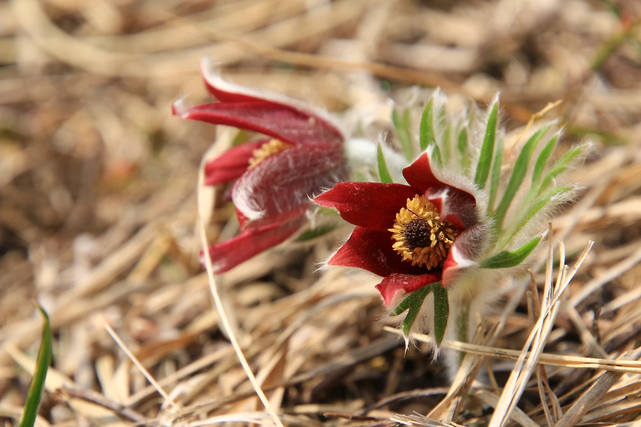 용눈이오름을 오를 때는 발밑을 주의 깊게 봐야 한답니다. 할미꽃이 얼마나 이쁜지 실제로 보면 반할 듯 싶네요. 꽃이 이쁜데 허리가 휘었다고 할미꽃이랍니다. 솜털이 보송보송한데 색깔은 기가 막힌 꽃이 풀숲에 가려 숨어 있답니다. 정말 주의 깊게 살피면서 걸어 다니다 보면 "아 여기 있구나!"라고 탄성을 지르실 겁니다.