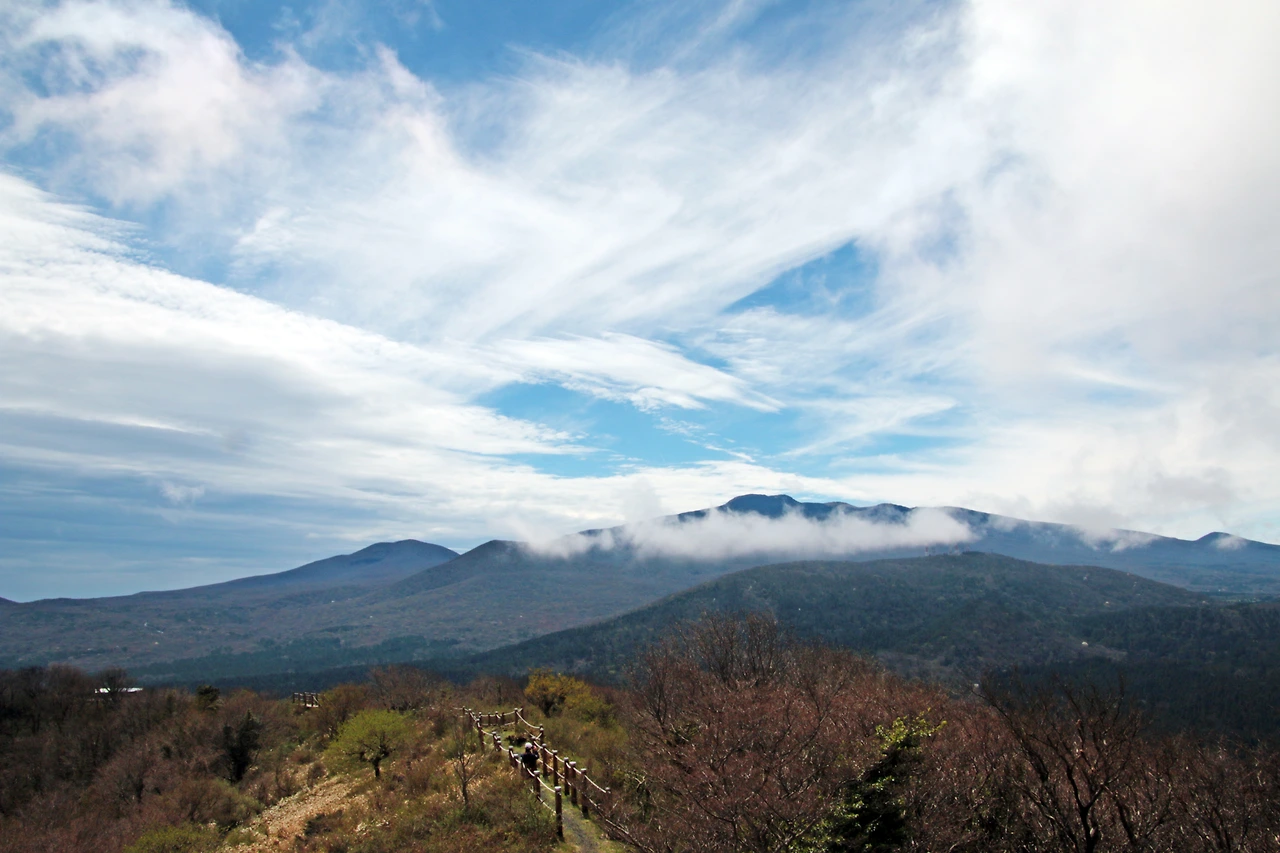야생화 본다고 발밑만 보지 마시구요. 쉬엄쉬엄 걷다 보면 풀 뜯는 노루도 만날 것이고 봄 볕을 쬐는 까마귀들도 보이겠죠. 그러다가 정상의 전망대에 올라서면 장쾌하게 드러나는 한라산을 볼 수도 있습니다. 요즘 제주는 고사리 장마라 늘 하늘이 찌푸렸는데 잠깐 파란 하늘을 볼 수 있어서 얼마나 좋던지요.