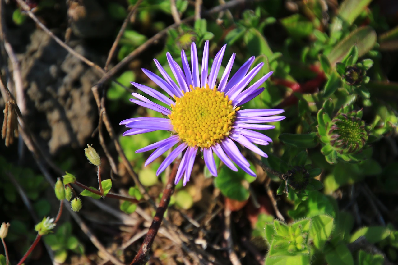 섭지코지에서 만난 왕개쑥부쟁이는 사실 가을에서 겨울에 더 많이 볼 수 있는데 봄에도 잘 나타납니다. 주로 바닷가에서 흔하게 볼 수 있죠. 화려한 색깔이 인상적이랍니다.