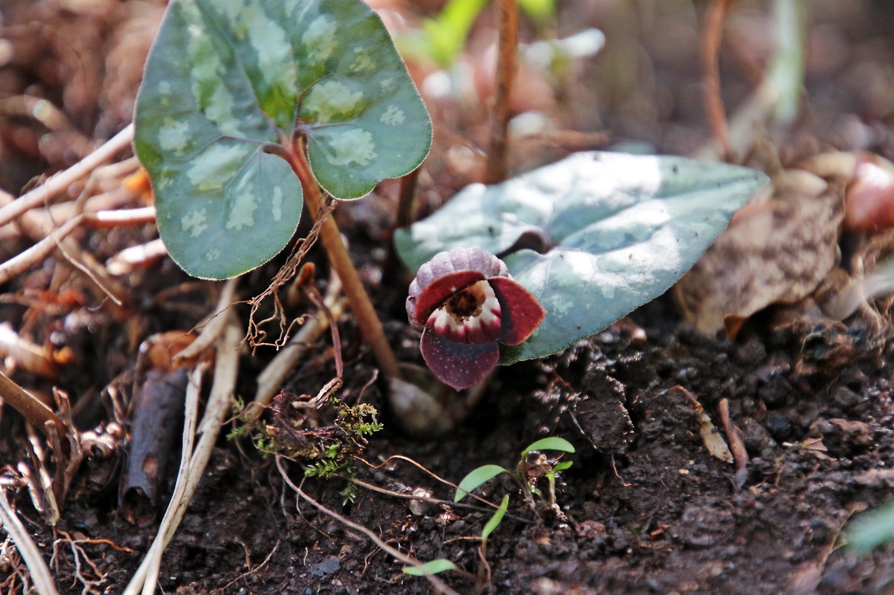 족두리풀. 이런 모양새의 잎이 보이는데 낙엽이 덮여 있다면 그 밑에 꽃이 숨어 있습니다. 지금 한창 꽃이 필 때죠. 작은 꽃이지만 나름 아름다운 꽃을 피워냅니다. 흔하게 볼 수 있는 꽃은 아니지요.