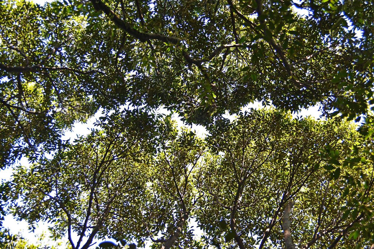선흘 동백숲을 걷다가 위를 올려다봤어요. '틈'이 있더라고요. 서로 양보라도 한 듯이 일정하게 간격을 유지한 '틈' 사이로 봄볕이 들어오더군요. 사진에서 보는 나무들 사이의 '틈'은 신기하게도 항상 일정한 간격을 유지해요. 서로에 대한 배려심일까요? 그래야 같이 생존할 수 있겠죠. 수세가 강한 나무가 덮어버리면 약한 나무는 광합성을 할 수 없어 죽고 말겠죠. 아참 이 같은 '틈'은 같은 종의 나무에서 더 많이 보이죠. 같은 종끼린 서로 돕는다고 해야 할까요?