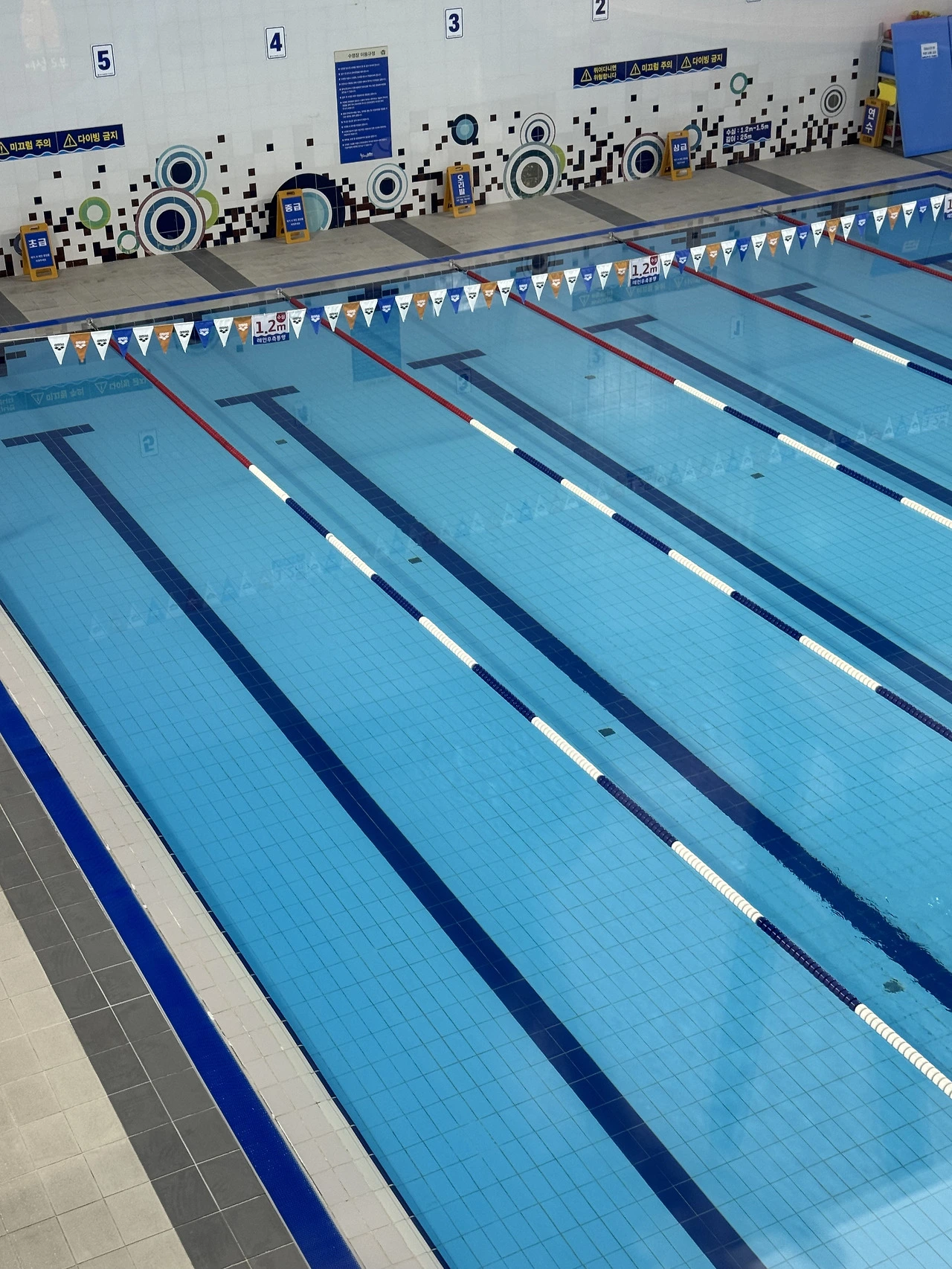 건물 규모가 압도적으로 커서 1차로 놀라고, 수영장 내부를 2층에서 내려다볼 수 있는 것에 2차로 놀랐다. 초급반 전용 레인부터 상급반, 연수반, 오리발전용 레인까지 철저하게 구분되어 있었다.