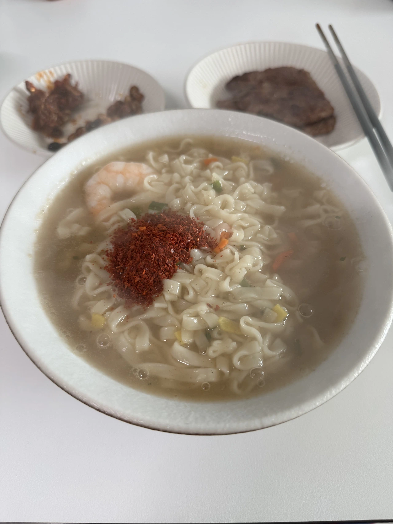 그리고 나의 스윔푸드. 남편이 (나름 전주 베테랑 칼국수 느낌으로) 끓여준 칼국슈. 수영을 마치고 집에 오는 길은 수영장에 있던 따듯한 온기가 사르르 다 식어버리는데 집에 와서 뜨끈한 국물로 다시 채워주니 행복했다.