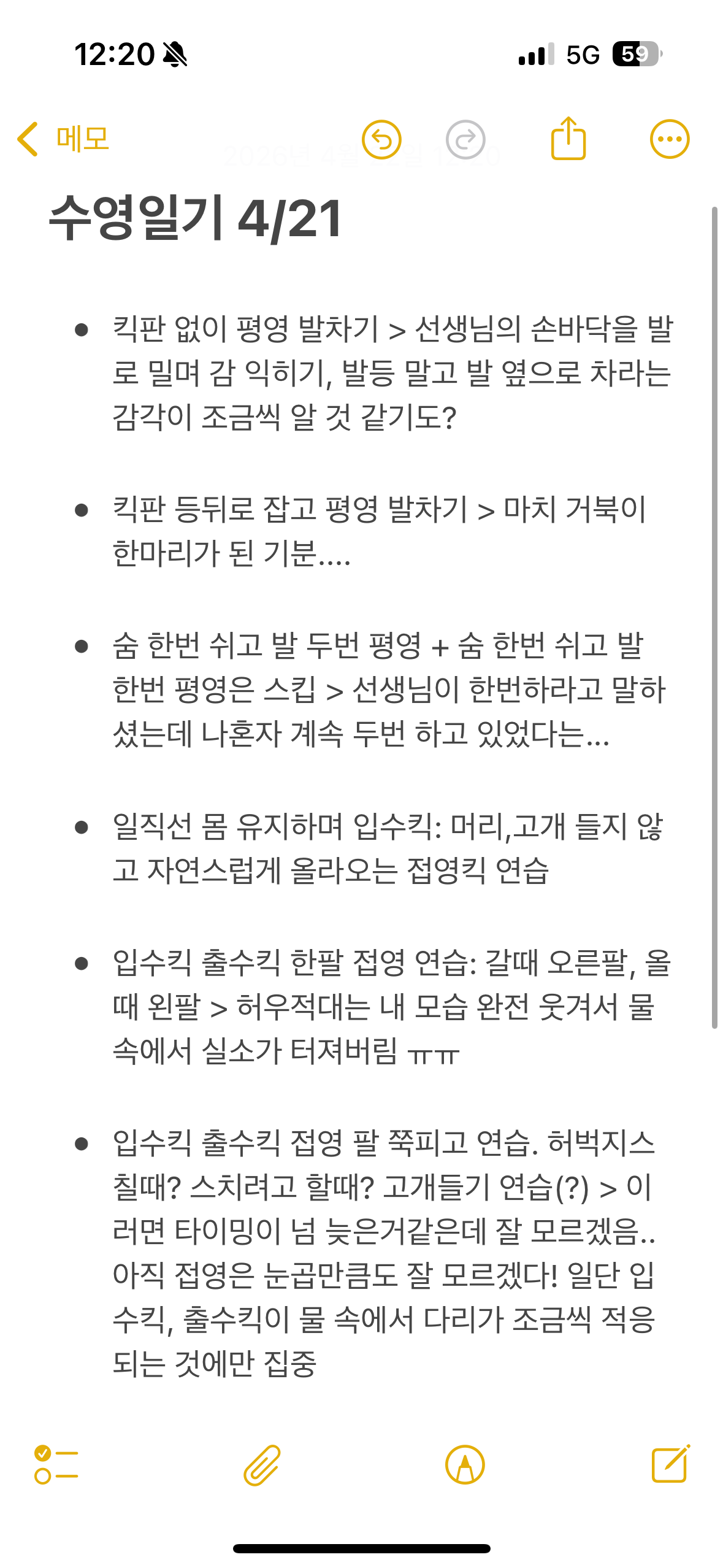 어제의 스윔노트는 아이폰으로 쓴 메모의 사진으로 대신한다!