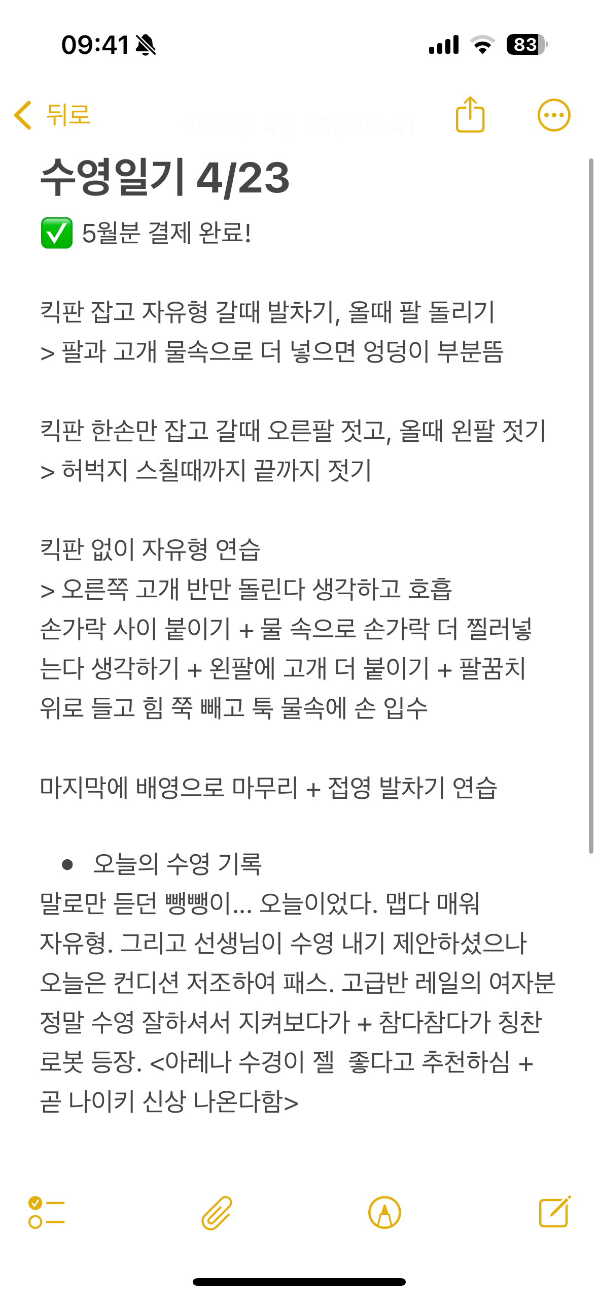 자유형은 할 때마다 언제나 새롭고 짜릿하다.
