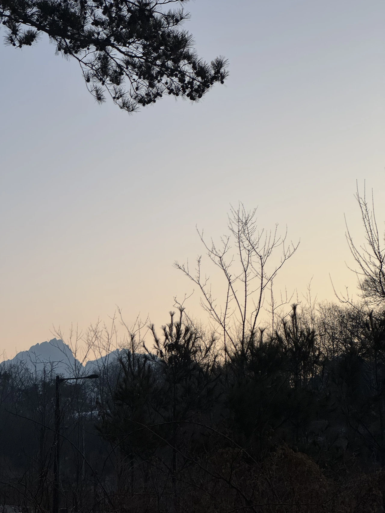 얼굴은 시린데 발걸음은 가볍고, 서서히 붉어지는 하늘빛을 바라보며 감탄을 했다.