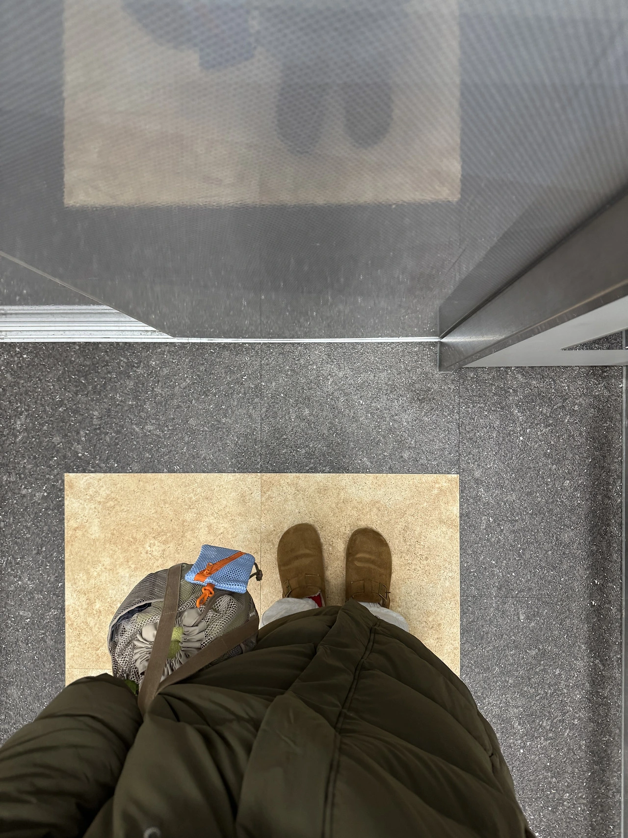 엘리베이터 문이 열리고, 수영장에 도착했다.